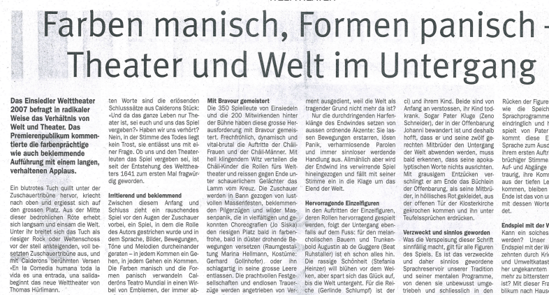 Diese Besprechung würdigt Thomas Hürlimanns und Volker Hesses aussergewöhnliche Neuinszenierung des bekannten Welttheaters von Einsiedeln.