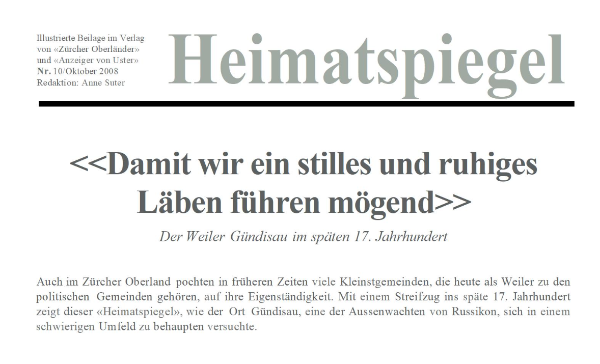 Dieser Fachartikel ist im Rahmen einer Vortragsreihe zwischen 2007 bis 2010 entstanden, die ich vor der Dorfbevölkerung von Gündisau gehalten hatte. Er beschreibt einen Ausschnitt aus der Geschichte des Dorfes vom Mittelalter bis zur Auflösung der Zivilgemeinde 1924.